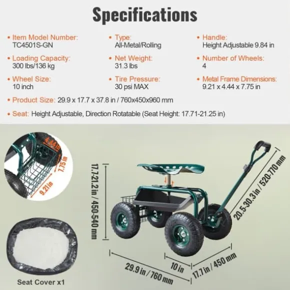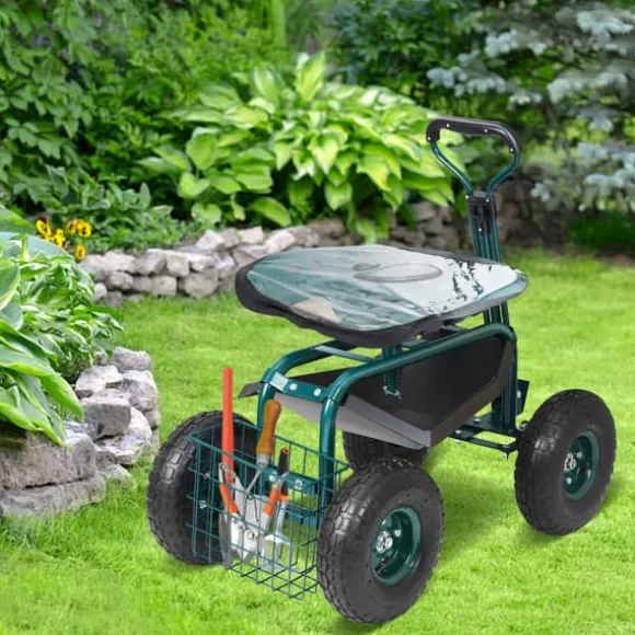Mycket förvaringsutrymme: Den robusta förvaringskorgen i metall erbjuder gott om utrymme för dina trädgårdsredskap. Den är placerad så att den är lättåtkomlig medan du sitter på rullstolen.