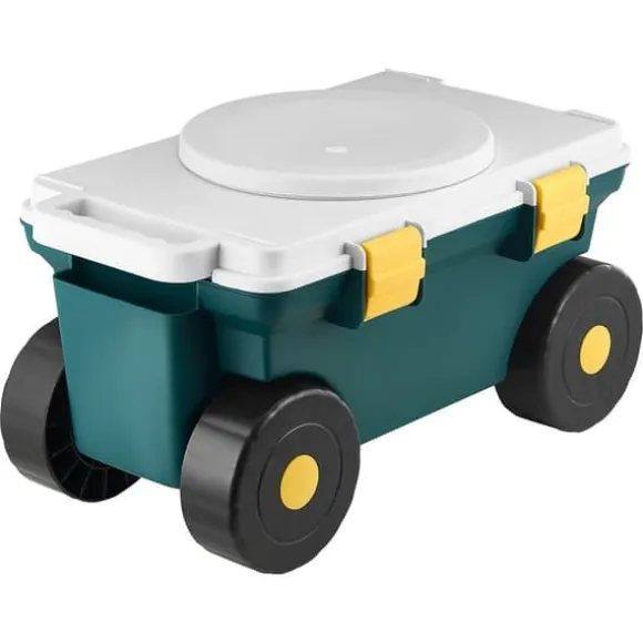 Den rullande trädgårdsvagnen har ett stort invändigt förvaringsfack där du kan organisera och förvara dina trädgårdsverktyg som handskar, saxar och murslev på ett smidigt och lättillgängligt sätt.