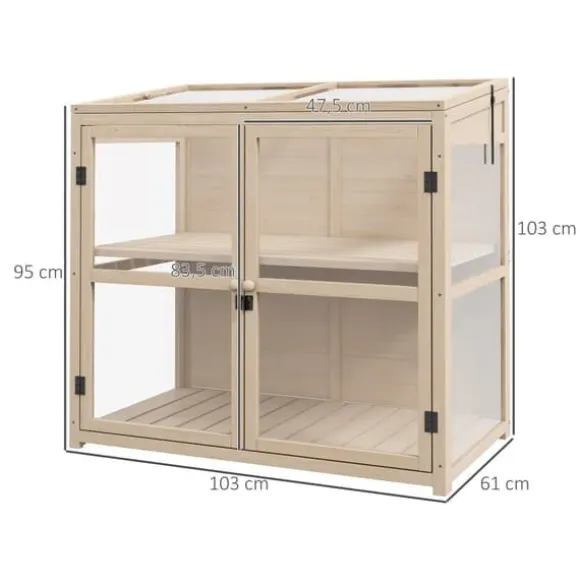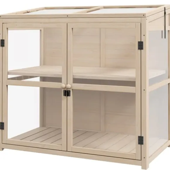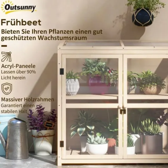 – Trädhus: Detta växthus av naturligt trä och akryl med en ljusgenomsläpplighet på mer än 90 % ser till att dina växter frodas i ett väl upplyst och skyddat odlingsutrymme.