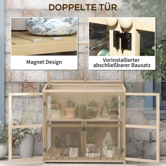 – Magnetiska dubbeldörrar: De rymliga dubbeldörrarna underlättar skötseln av växterna och ger enkel åtkomst till alla hörn av växthuset. De är utrustade med ett låsbart kit så att du själv kan montera ett lås för extra säkerhet.