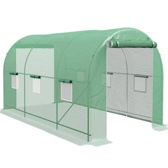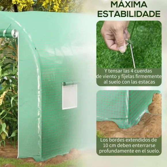 Rymligt växthus för pålitlig odling året runtDetta växthus på cirka 8 m² ger dina växter, grönsaker och frukter ett stabilt och skyddat klimat. Den robusta metallstommen och den UV-beständiga PE-duken bevarar värme, släpper in ljus och skapar optimal fuktbalans.