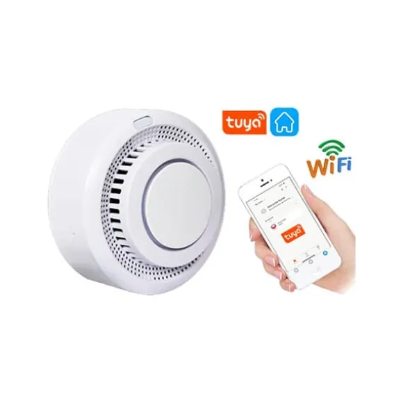 Det smarta brandlarmet Tuya SM-01 är ett praktiskt verktyg för att säkra och kontrollera ditt hem. Det Wi-Fi-anslutna smarta röklarmet skickar ett meddelande till din telefon så snart rök upptäcks, och en högljudd siren på 80 dB varnar alla i hemmet. Rökdetektorn ger dig omedelbart besked om det börjar ryka i ditt hem.