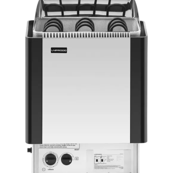 Vårt effektiva elbastuaggregat för torr- och våtbastu från varumärket Uniprodo är en utrustning du kan lita på. Bastuugnen är tillverkad med tysk precision, och är lämplig för bastur som är 3–6 m