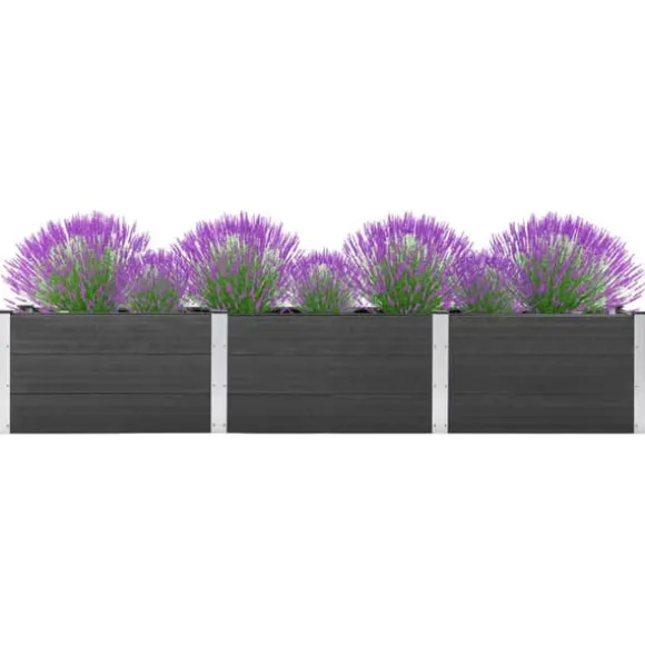 Odlingslådan är tillverkad i träplastkomposit (WPC), som gör den hållbar, väderbeständig och lämplig för utomhusbruk. Den har plats för ett stort antal gröna växter och blommor.