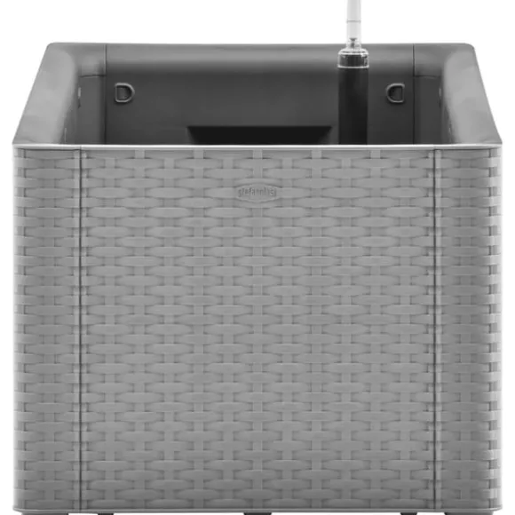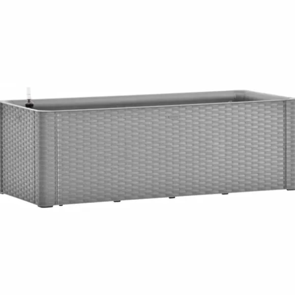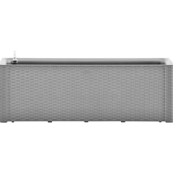 Odlingslådan är tillverkad i robust UV-, väder- och frostbeständig PP (polypropen) och kan användas både inomhus och utomhus. Designen liknar riktig rotting. Blomlådan rymmer ett stort antal växter och blommor. Dessutom har odlingslådan ett självbevattningssystem och en nivåindikator som förhindrar överbevattning.