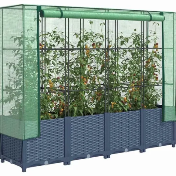 - Robust konstruktion: Den upphöjda odlingslådan i polypropen har en robusta järnram på toppen, vilket gör att växter kan växa och klättra genom den.