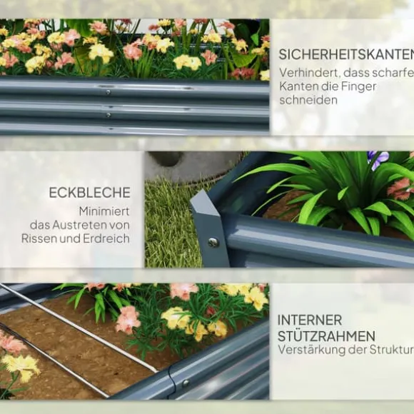 Denna upphöjda odlingsbädd är utformad för att förbättra din trädgårdsupplevelse genom att erbjuda en hållbar och väderbeständig planteringplats, idealisk för grönsaker, blommor och örter. Dess öppna botten säkerställer utmärkt dränering och rotutveckling, medan stabiliserande stöd förbättrar den övergripande stadgan för långvarig användning.