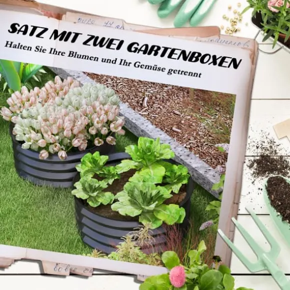 - Setet inkluderar två upphöjda planteringskärl för trädgårdsbruk, antingen tillsammans eller separat
