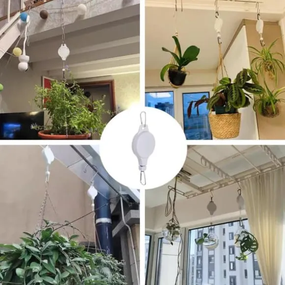 Maximera ditt utrymme med dessa robusta och flexibla växthållare med repsystem. Perfekta för att hänga krukor, fågelmatare eller dekorationer i trädgårdar, balkonger och altaner – helt utan stege eller krångel.
