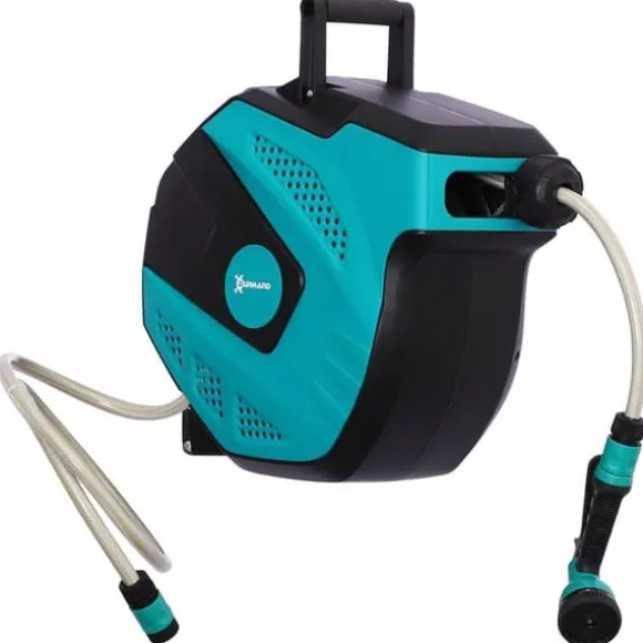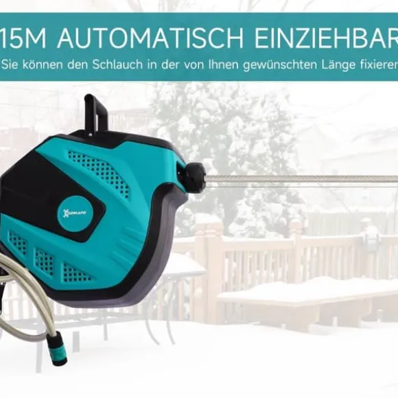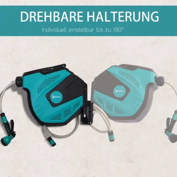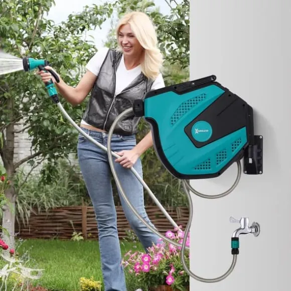 – Säkerhetsgaranti: Stopparen på trädgårdsslangen säkerställer att slangen inte rullas upp igen under användning förrän du är klar och aktiverar den smidiga upprullningsfunktionen.