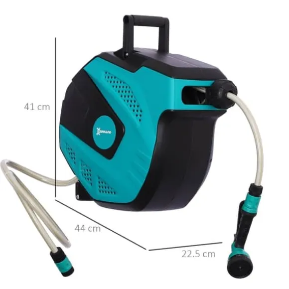 – Data: Totala mått: L44 x B22,5 x H41 cm, slanglängd: 15 m.