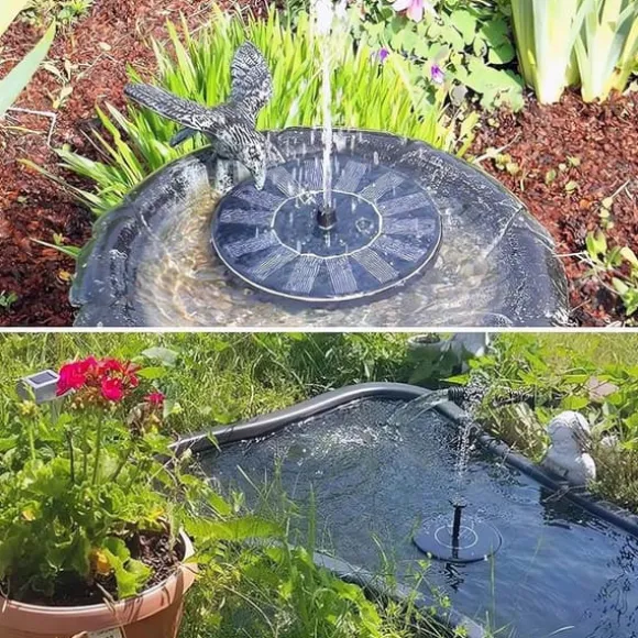 Solcellsdriven vatten fontän som du använder utomhus i t.ex poolen, dammen eller fågelbadet.