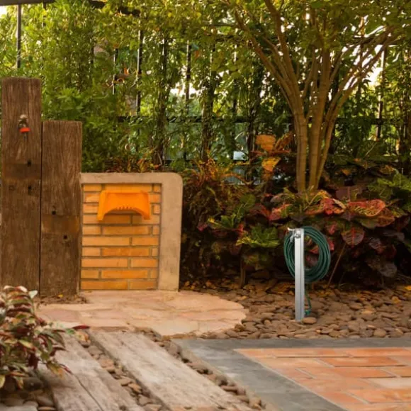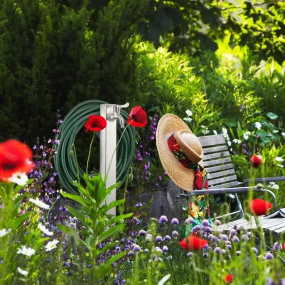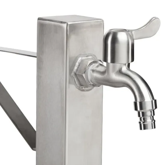 Denna praktiska vattenpelare med integrerad slanghållare är en bekväm lösning för att hålla din trädgårdsslang organiserad och lättillgänglig, samtidigt som den erbjuder en utomhusvattenkran för att fylla vattenkannor eller tvätta händerna. Tillverkad av robust, rostfritt stål som inte rostar, kan den enkelt installeras i din trädgård med den medföljande markspetsen eller fästas på stenplattor med markankare. Designen säkerställer att din slang förblir fri från veck och alltid redo att användas.