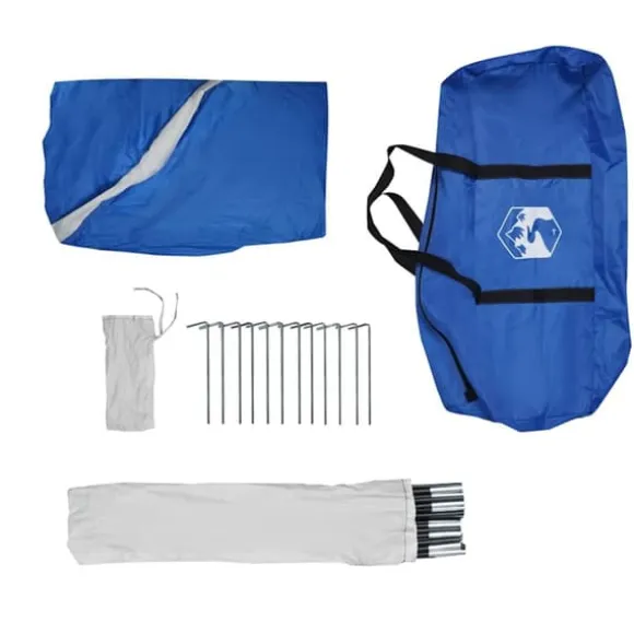 - Enkel installation och nedtagning: Att sätta upp och ta ner tältet är enkelt tack vare de mycket flexibla och lätta glasfiberstängerna och det bekväma stift- och ringanslutningssystemet.