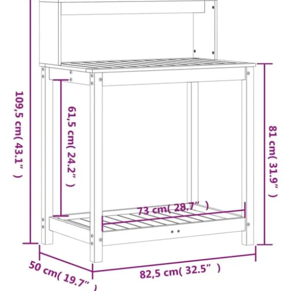 - Gott om förvaringsutrymme: Växtbordet med öppna hyllor har gott om utrymme för relaterade varor som små trädgårdsredskap, jord, gödningsmedel etc.