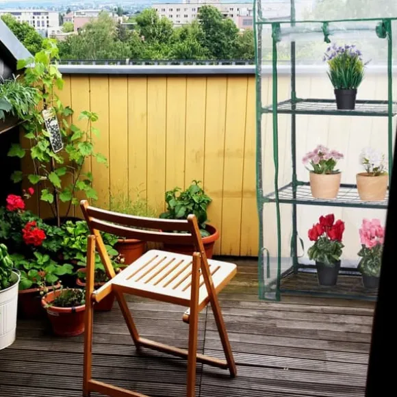 Detta kompakta balkongväxthus är perfekt för hobbyodlare som vill vårda och skydda sina växter på begränsat utrymme. Dess genomskinliga överdrag släpper in rikligt med ljus samtidigt som det skyddar plantor från hårt väder och skadedjur, och den uppfällbara dörren ger enkel åtkomst och optimal ventilation. Snabbt att montera, passar det bekvämt på mindre balkonger och är en idealisk lösning för stadsodling.