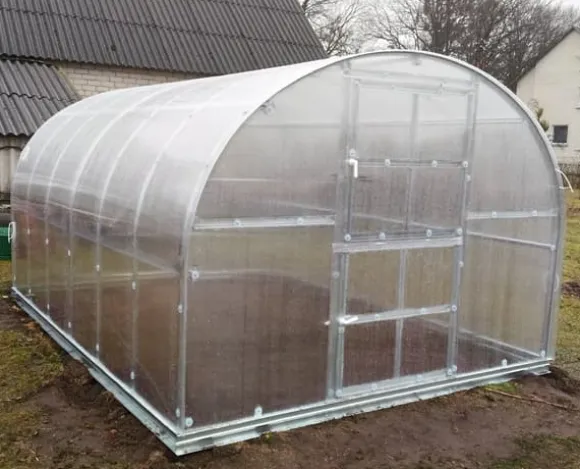 Metallprofilerna i det välvda växthuset Baumera KLASIKA är gjorda av 78 mm bred stålremsa, som kompletteras med M5-skruvar. Växthus Baumera KLASIKA är mycket hållbart, särskilt i de norra regionerna. Det är inte nödvändigt att demontera växthuset för vintern, eftersom växthuset tål vikten av snö.