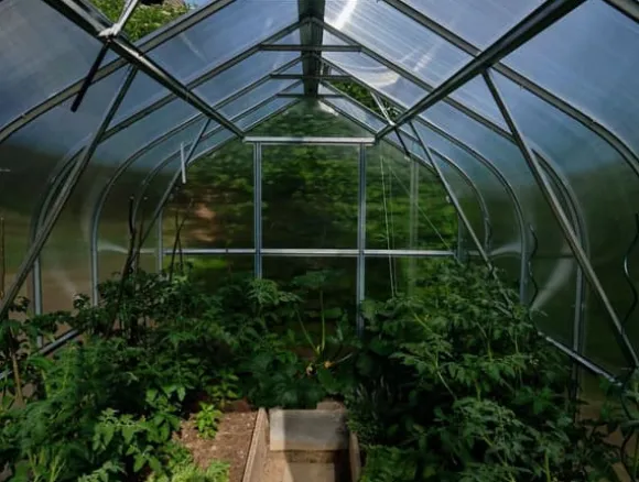 Växthuset har dubbla dörrar i ena änden, samt luckor med automatiska lucköppnare. Dessutom kan du köpa gångavdelare, bord, extra luckor, ytterligare dörrar, ett fack inuti växthuset, bevattningssystem.