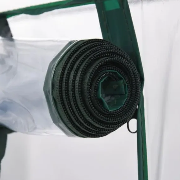 Det är utrustat med en ram av stålrör för ökad stabilitet och PVC-överdraget kan hjälpa till att upprätthålla rätt fuktighetsnivåer för att odla en mängd olika växter, grönsaker, frukter och örter. Dessutom har den en upprullbar dörr med blixtlås för förbättrad luftcirkulation och enkel åtkomst till plantorna. Med detta praktiska odlingshus kan du enkelt odla dina växter i en hälsosam miljö året runt.