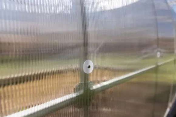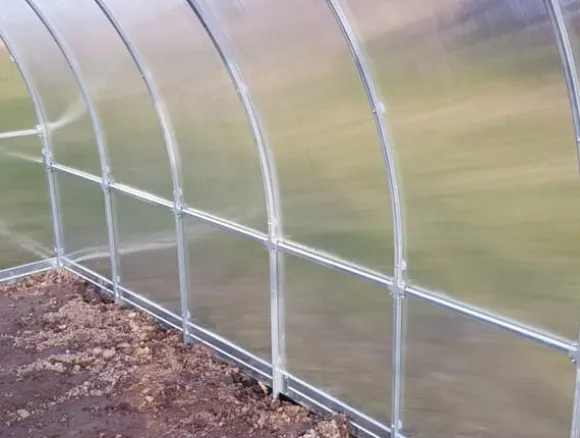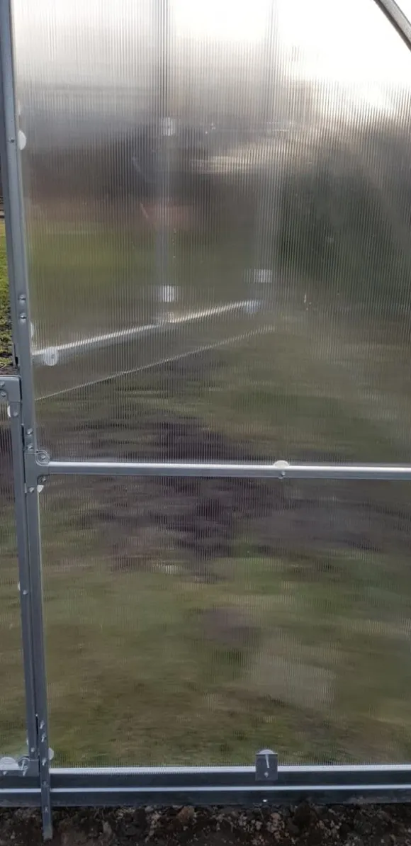 Fundament: 10 cm. hög, gjord av galvaniserad metall, 1 mm tjock. (Fundamentet gör växthuset ännu hårdare och förhindrar att polykarbonatbeläggningen kommer i kontakt med marken)