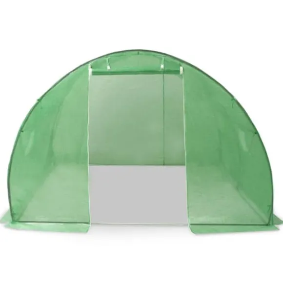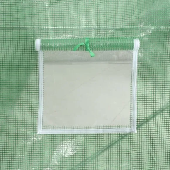 Detta växthus blir en bra lösning för att skydda dina plantor mot vind, regn, sol och skada från fåglar. Växthuset är tillverkat av 140g/m² PE-nättyg som är 25% tyngre än många konkurrenters standard nättyg. Det förhindrar därför påverkan från externa influenser ännu bättre. Växthuset har en stadig och rostfri galvaniserad stålram för extra stabilitet. Växthuset är utrustat med fyra fönster på 38×38 cm för ventilering samt en dörr på 100×185 cm.