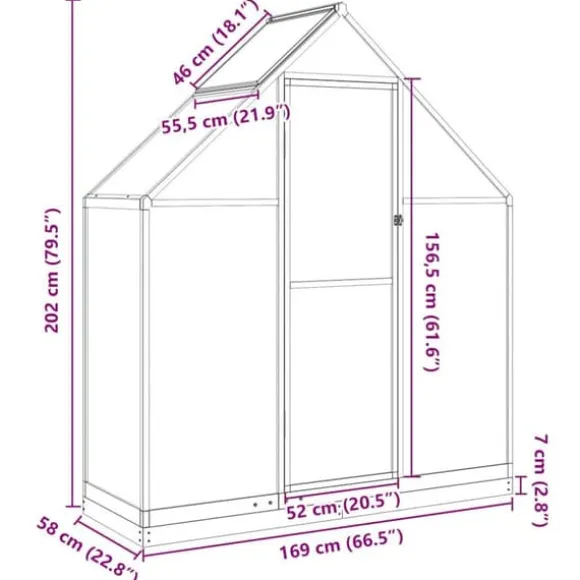 - Väderbeständig och robust ram: Växthusets ram är gjord av rost- och väderbeständig aluminium för stabilitet och för att tåla kraftiga vindar.