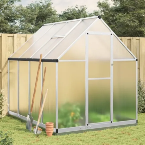- Praktisk design: Denna växthusram är utrustad med en 6 cm hög bottenprofil i aluminium som enkelt kan grävas ned i marken, vilket sparar in på extra grundkostnader. Den har också en 7 cm bred bas av galvaniserat stål för att öka stabiliteten.