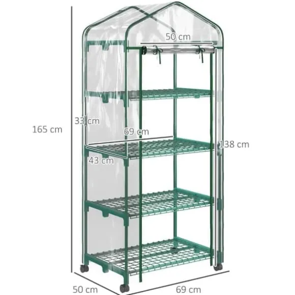 – Med växtställ: Plastväxthuset är utrustat med 4 hyllplan (höjd per fack: 33 cm, varje med max. 10 kg belastning) så att du kan sortera dina växter på ett utrymmesbesparande och överskådligt sätt