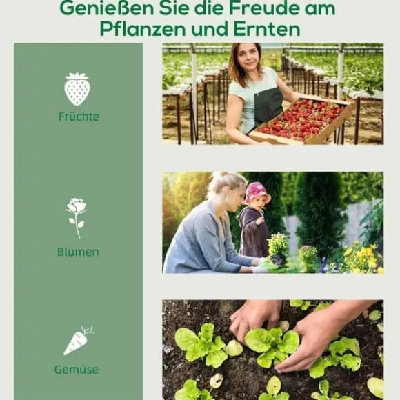 – Väderbeständigt: Dina dyrbara frön skyddas väl mot frost och dåligt väder tack vare den 140 g/m² tjocka folien. Den är dessutom UV-beständig och hållbar. Genom rullporten kan du dessutom enkelt komma in i folieväxthuset