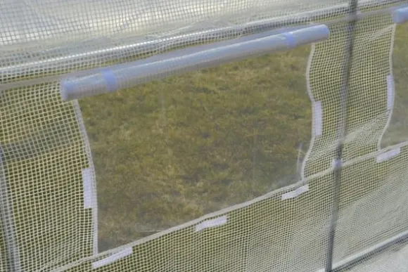 Skyddshöljen är tillverkad av PE-folie. Presenningen har kardborrefästen, 6 myggnätsfönster och en dragkedjsöppning. Botten är försedd med extra flikar för att förhindra att vinden kommer in. Måtten för denna skyddshölje till växttält är: 200x450x200 cm, och den passar för tält med en yta på 9 m2.
