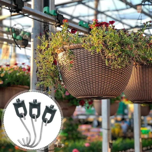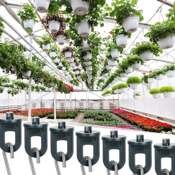 Mångsidig upphängningslösning: Kombinationen av vridklämmor och S-krokar erbjuder en mångsidig upphängningslösning för dina växthusbehov. Krokarna är ett bekvämt sätt att hänga upp krukor, verktyg eller andra lätta föremål.
