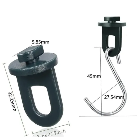 Lätt att använda: Den användarvänliga designen gör klämmorna otroligt lätta att använda. Vrid helt enkelt upp klämman, fäst den på önskad plats och släpp för att säkra. S-krokarna glider enkelt in i klämmorna, vilket ger en snabb och säker anslutning.