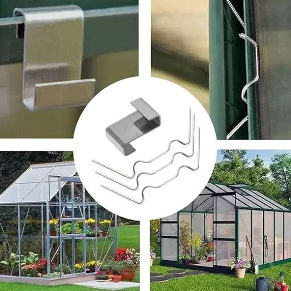 Mångsidig applikation: Designade för att passa de flesta standardvärmehusspecifikationer, dessa klämmor är lämpliga för att fästa glaspaneler av olika tjocklekar. De är perfekta för användning under alla årstider och tillför pålitligt stöd för ditt värmehusglas under hela året.