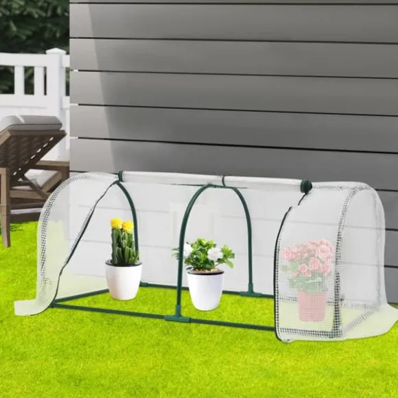 Stabil konstruktionKombinationen av PE, plast och järn gör duken rivtålig och ramen rosttålig. Växthuset står stadigt säsong efter säsong.