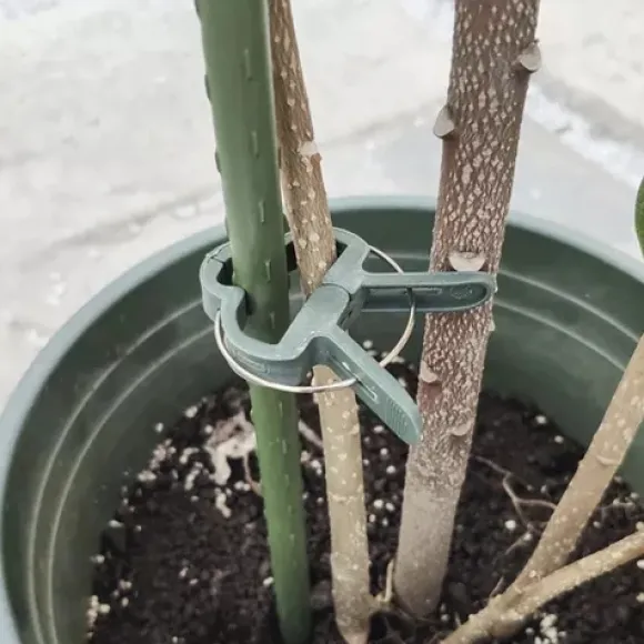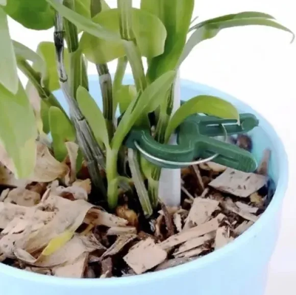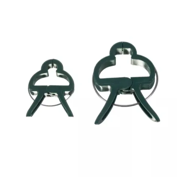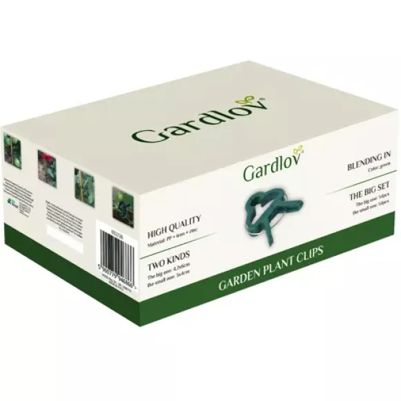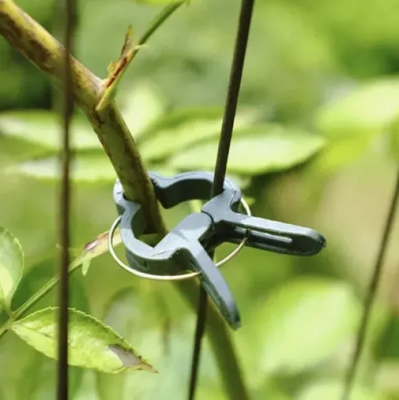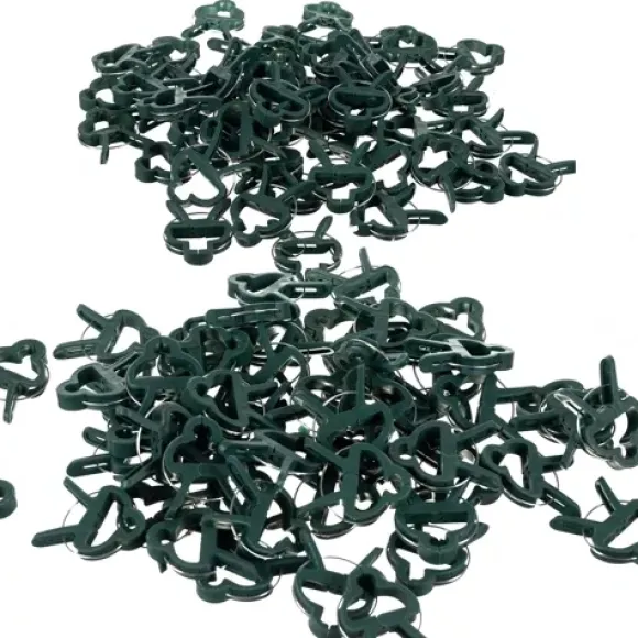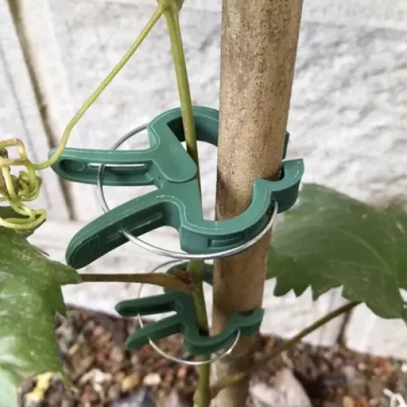 Klämmorna är tillverkade av PP-material och förstärkta med järn och zink för extra hållbarhet. De är resistenta mot regn, fukt och solljus, vilket säkerställer en lång livslängd. De två olika storlekarna gör att de passar perfekt för både små och stora växter, vilket gör dem mycket användbara i alla typer av trädgårdar och växthus.