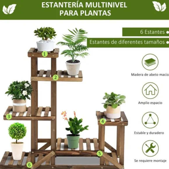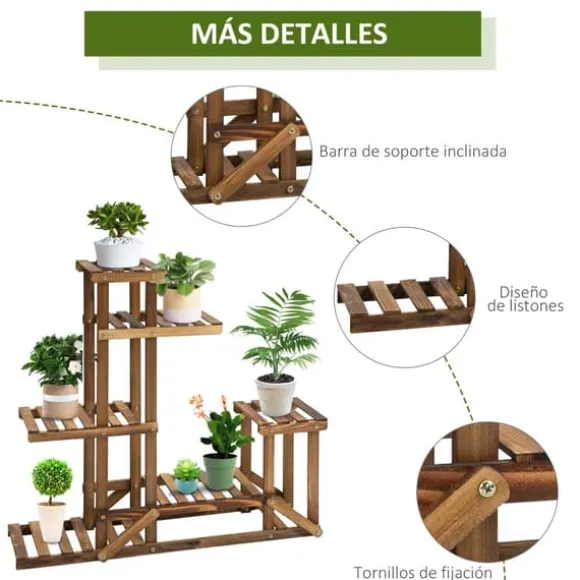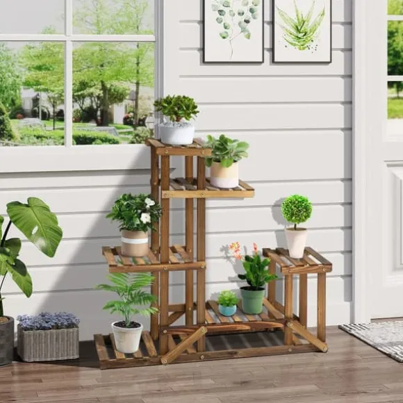 Flervånings växtställ i trä för hem och trädgårdEtt stilrent växtställ som visar upp dina växter på flera nivåer och sparar golvyta. Den robusta konstruktionen i karboniserat, lackat trä ger stabilitet och lång hållbarhet, medan den vertikala designen rymmer många krukor i olika storlekar.