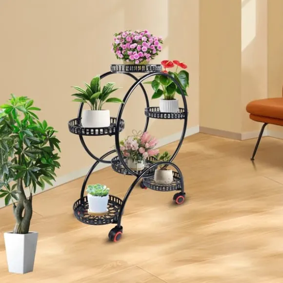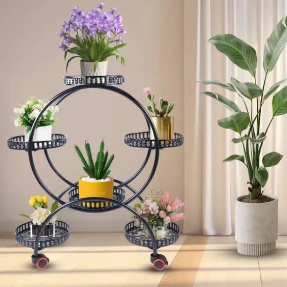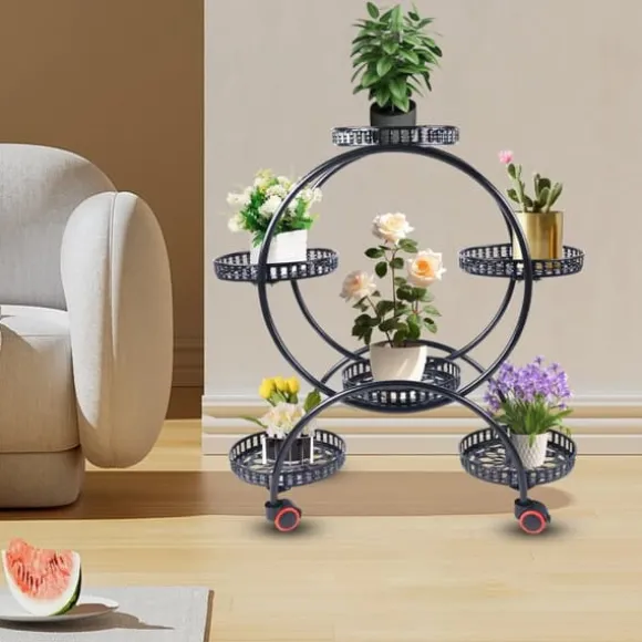 Stilren växtställning för hem och trädgårdDenna fristående växtställning i svart ger stabil och elegant placering av dina växter, perfekt för inomhus- och utomhusbruk. Den robusta metallkonstruktionen med slät finish kombinerar lång hållbarhet, smidig förflyttning och tidlös design.