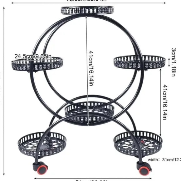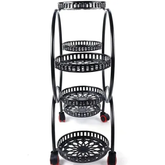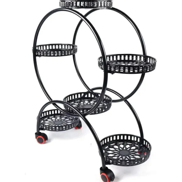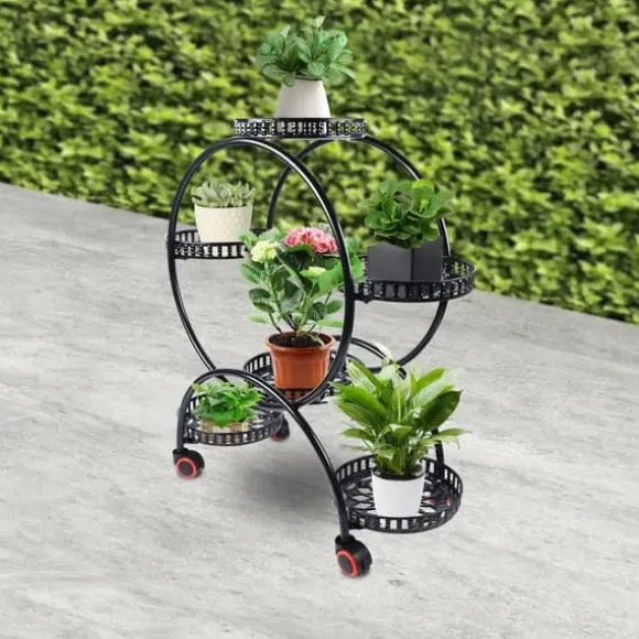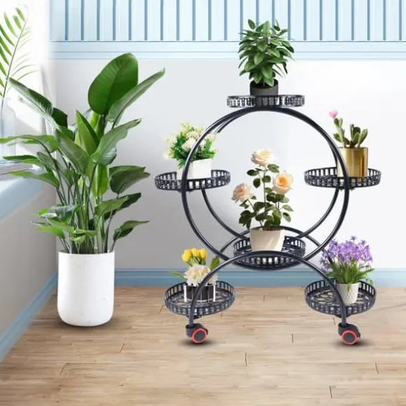 Metallblomställ med hjul i svart – smidig och stilren växtförvaringDetta robusta blomställ i lackerat metall har sex rymliga hyllor och rullar enkelt till valfri plats. Den svarta, eleganta finishen och de fina linjerna lyfter fram dina växter i vardagsrum, sovrum, kontor eller på skyddad uteplats.