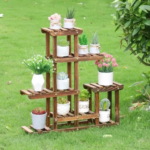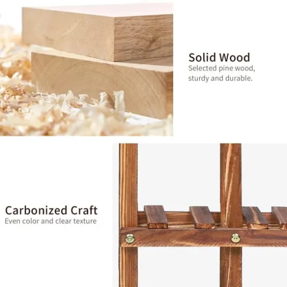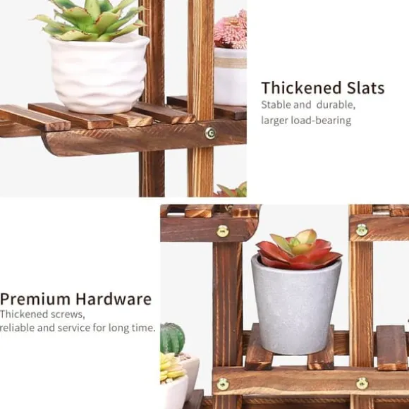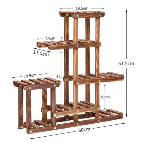 Modern växtställ i brunt furu – 6 nivåerDetta stilrena växtställ i massivt furuträ erbjuder sex nivåer för smart och luftig exponering av små krukor. Med måtten 60×11,5×61,5 cm och total maxbelastning 15 kg passar det perfekt för suckulenter, kaktusar, Scindapsus och små blomkrukor – både inne och ute.