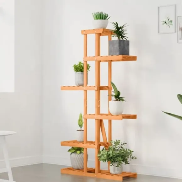 Detta växtställ i trä är ett bra val att ställa och visa upp dina växter och andra dekorativa föremål på.