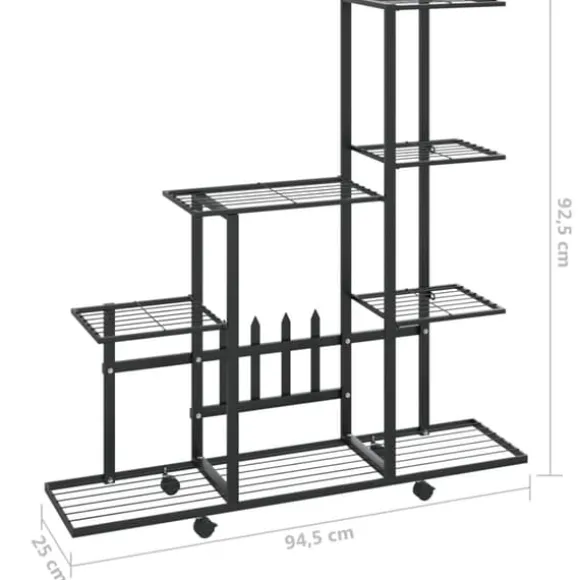 Blomstället är gjort av metall som är robust och hållbart, vilket garanterar många års användning. Växtstället gott om plats att visa upp dina fina växter. Hjulen gör det enkelt att flytta runt. Dessutom torkas stället enkelt rent med en fuktig trasa.