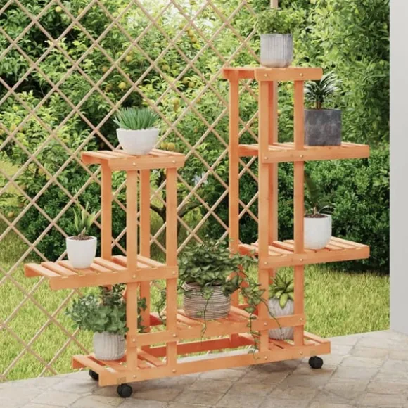 Detta växtställ i trä är ett bra val att ställa och visa upp dina växter och andra dekorativa föremål på.