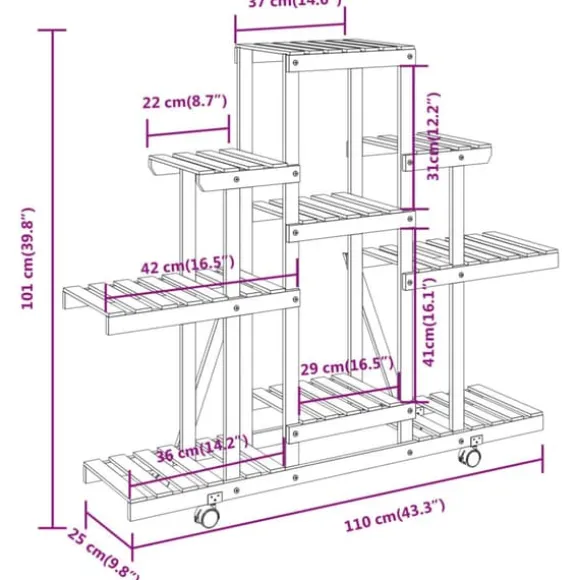 - Slitstarkt granträ: Detta växtställ är tillverkat av granträ, som är robust och hållbart, vilket garanterar många års användning. Tack vare dess vackra hantverk har detta växtställ utmärkt fuktsäker förmåga och väderbeständighet.