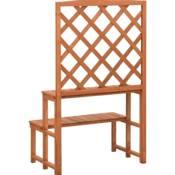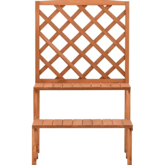 Detta växtställ är tillverkat i massivt granträ och är robust och lämpligt för utomhusbruk. Växtstället har hyllor i två nivåer med gott om plats för att förvara eller organisera krukväxter och trädgårdsornament. Stegdesignen visar upp blommor på ett fint sätt och hjälper växterna att få mer sol och växa bättre. Dessutom är spaljén ett utmärkt stöd för klätterväxter.
