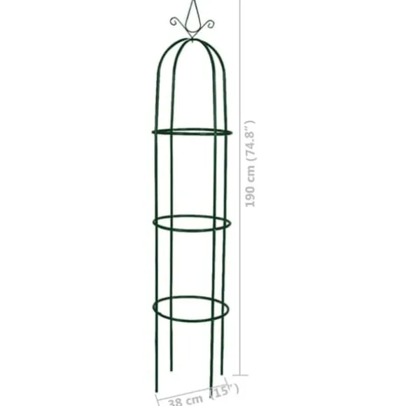 Denna uppsättning växtstöd består utav två stycken spaljéer i form av en obelisk, som båda är utmärkta för att utsmycka din trädgård. De är tillverkade i hållbart järn, som gör dessa växtstöd väderbeständiga och tillräckligt starka för att stödja de mest kraftfulla klätterväxterna. Du kan själv välja hur djupt ner i marken de ska sitta för bästa stabilitet.