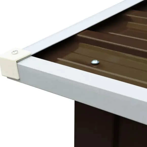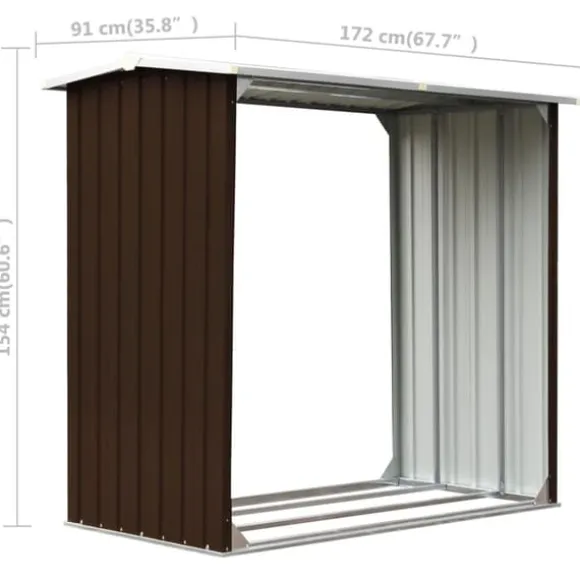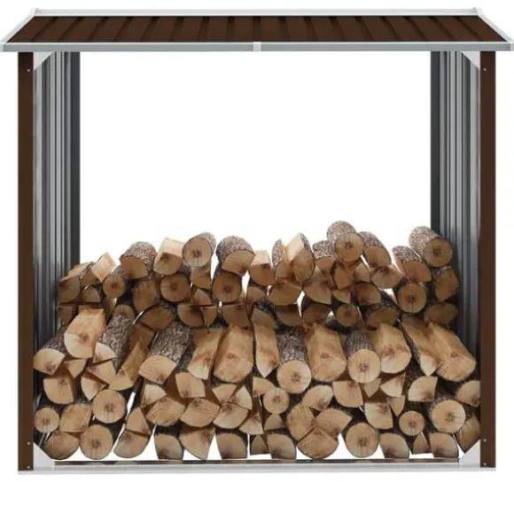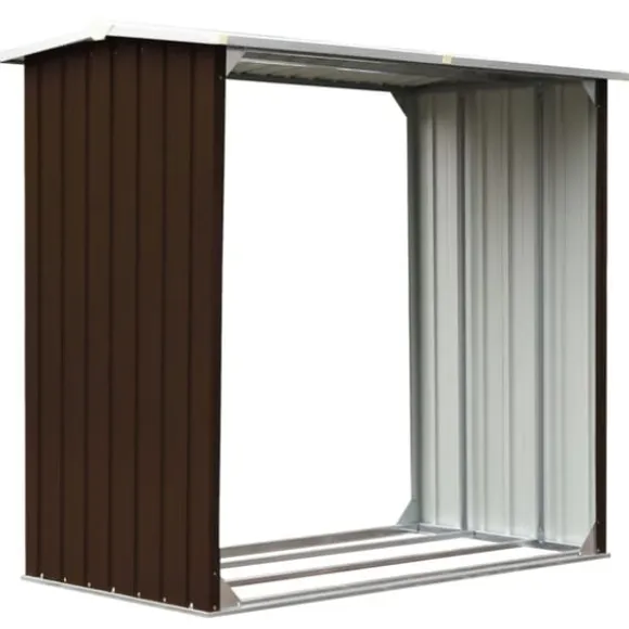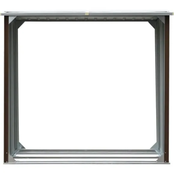 Det har en stabil konstruktion med extra rör på båda sidorna. Eftersom det är tillverkat i galvaniserat stål kräver vedskjulet minimalt underhåll och är mycket hållbart. Denna vedbod har en golvram i stål för ökad stabilitet och upphöjda golvspjälor som håller den ventilerad och torr. Regnvatten rinner automatiskt av från taket tack vare dess lutande design. Vårt vedskjul är enkelt att montera.