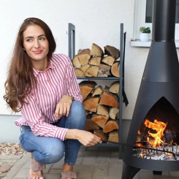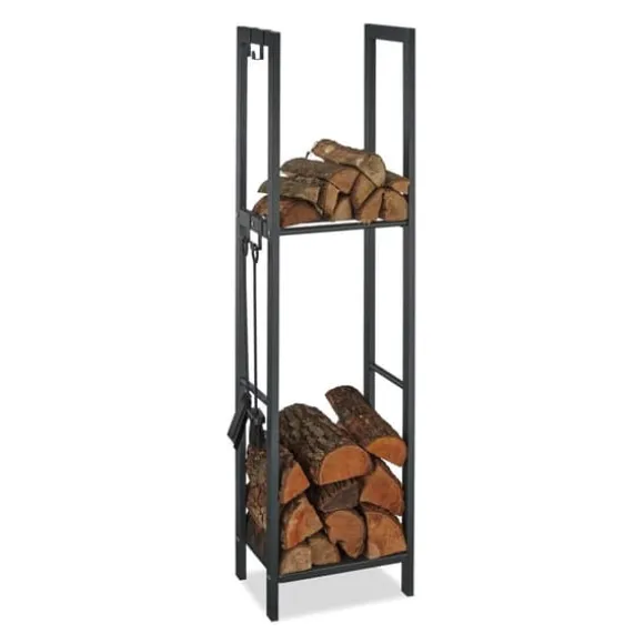Detta robusta vedställ med 2 nivåer erbjuder en praktisk och dekorativ lösning för förvaring av ved vid din öppen spis eller kamin. Dess stadiga stålkonstruktion och medföljande krokar för verktyg gör det idealiskt för att hålla veden organiserad och tillbehören nära till hands. Passar i vardagsrum, källare eller garage och hjälper till att skapa en ordnad och inbjudande atmosfär.