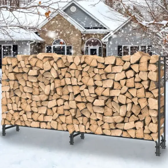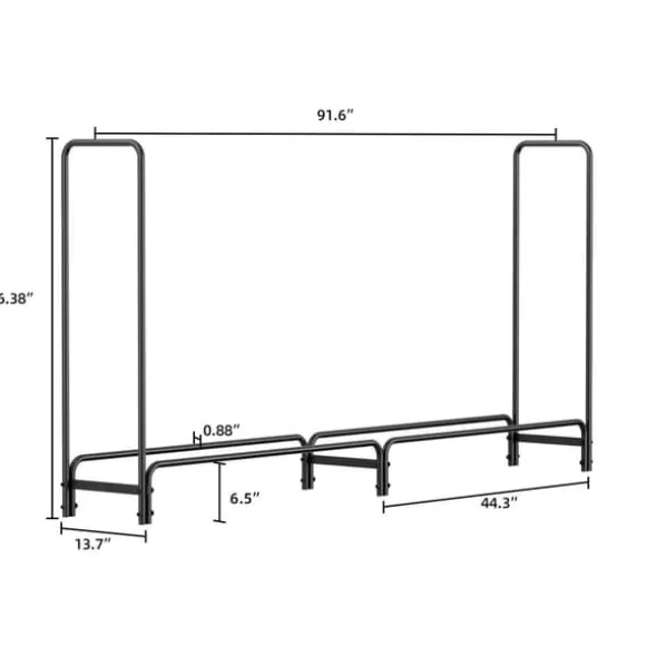 Extra lång vedställ i metall – 91,6″ robust förvaring för ordnad och torr ved
