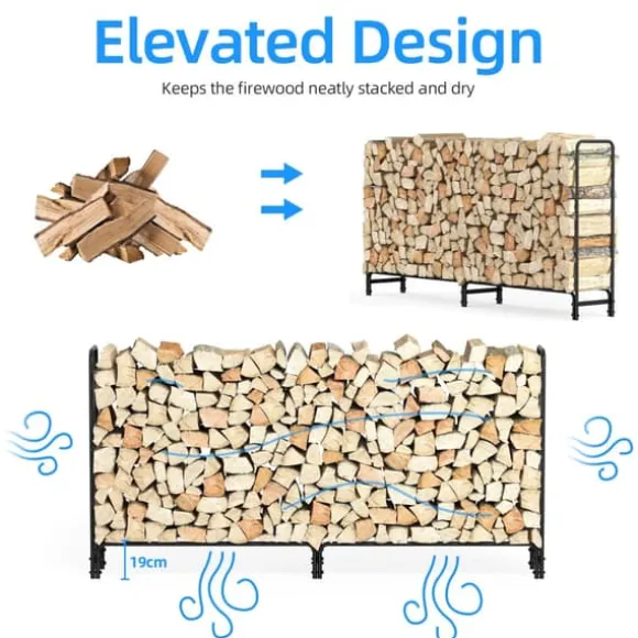 Den upphöjda designen lyfter veden från marken, vilket minskar fukt och möjliggör luftflöde som håller veden torr och redo för användning.