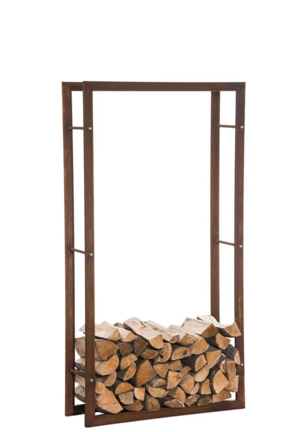 Särskilt praktiskt: för att förhindra att veden faller ut på sidorna finns det tre tvärbalkar på varje sida. De ger även extra stabilitet till vedstället.